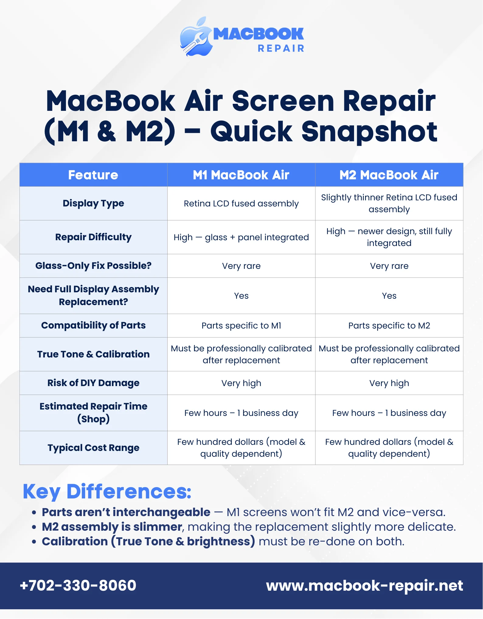 The M1 and M2 MacBook Air Retina display repair isn’t the same as fixing older Intel models. This hugely impacts the overall cost and repair process.